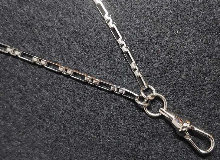สร้อยสแตนเลสลายโซ่กล่องเล็กยาว ความยาวสร้อย 26 นื้ว พร้อมสปริงก้ามปูสแตนเลสหมุนได้ |