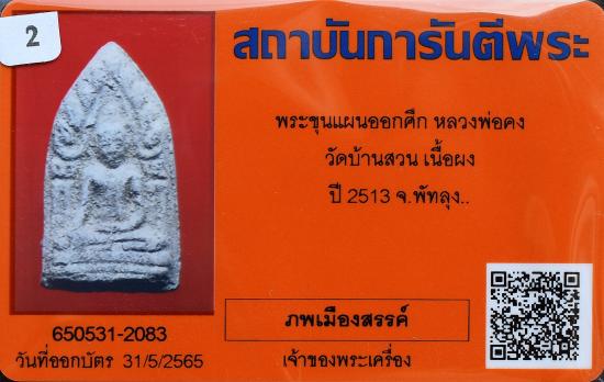 พระผงบารมีคงไชยชุม พิมพ์พระขุนแผนออกศึก อ.ชุม ไชยคีรี , หลวงพ่อคง วัดบ้านสวน เนื้อผง ปี 2513 จ.พัทลุง ( มวลสารรุ่นนี้เข้มขลังมาก ) + บัตรรับรองการันตีพระ |