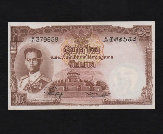 วัดใจ ธนบัตรชนิดราคา 10 บาท รุ่นโทมัส ผลิตประเทศอังกฤษ ออกใช้ปี 2502 สภาพสวย เพื่อการสะสม