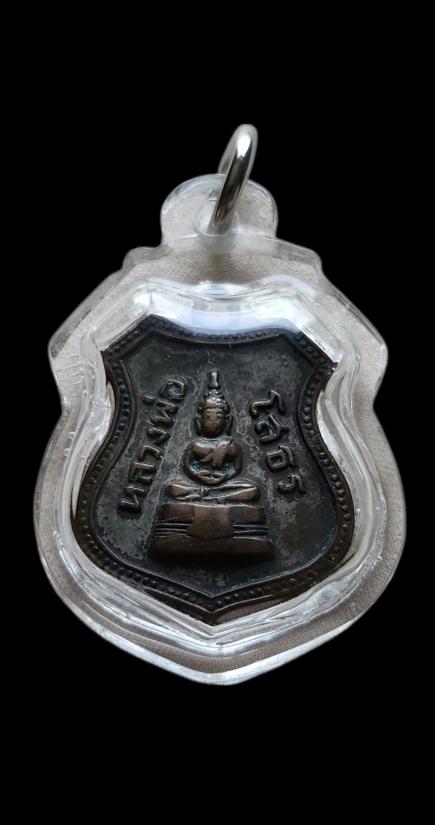 เหรียญเลื่อนสมณศักดิ์ หลวงพ่อโสธร ปี 2508 เนื้อทองแดงกะหลั่ยทอง วัดโสธร จ.ฉะเชิงเทรา. เหรียญนี้สภาพใช้แต่ยังสวยอยู่ครับ, ด้านหน้าของเหรียญคมชัด. เลี่ยมกันน้ำพร้อมขึ้นคอครับ