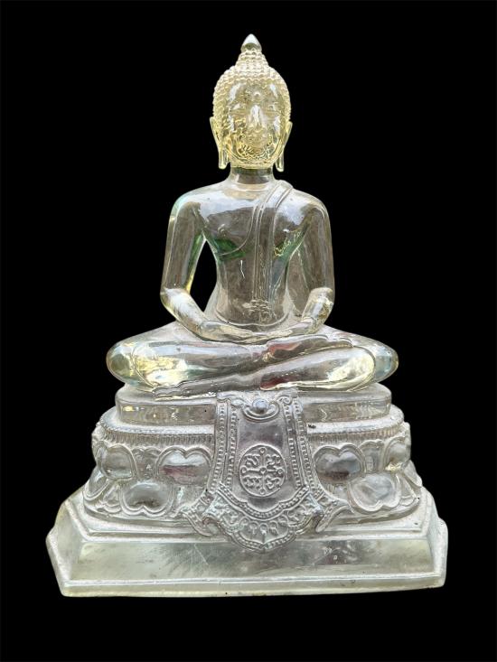 พระบูชาพระธรรมกาย หลวงพ่อสด วัดปากน้ำ ภาษีเจริญ "รุ่นที่ระลึก ปี2525'"..เนื้อเรชิ่นแก้วสีน้ำผึ้ |