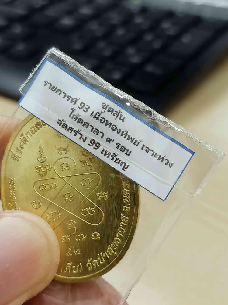 วัดใจ 100 เหรียญสร้างบารมี หลวงปู่คีบ ธีรปัญโย วัดป่าสุทธาวาส จ.นครพนม 2567 ทองทิพย์เจาะห่วง โค้ดศาลารอบ หมายเลข 52 สร้าง 99 กล่องเดิม