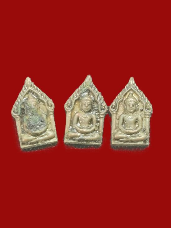 พระขุนแผนยอดขุนพล องค์จิ๋ว หลวงพ่อสาคร วัดหนองกรับ เนื้อสัตตะโลหะ ปี2544 มวลสารเนื้อชนวนชินบัญชร แช่น้ำมันงา เคาะเดียว 3 องค์