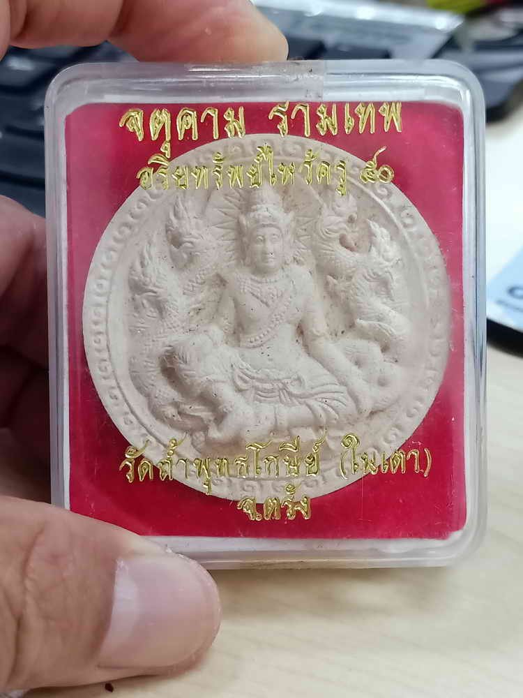 อายุกว่า 1,200 ปี ประทับไว้ด้านหลังทรงน้ำตาลแว่น ร่น " อริยทรัพย์ ไหว้ครู50