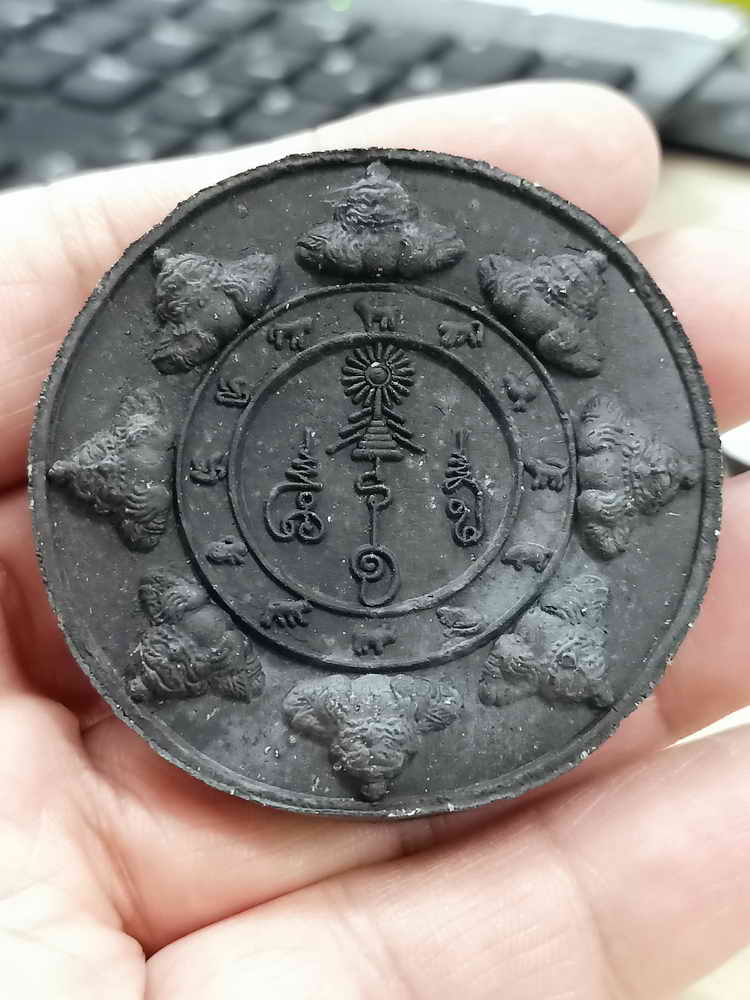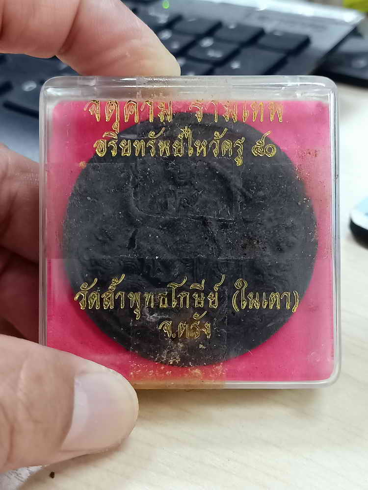 อายุกว่า 1,200 ปี ประทับไว้ด้านหลังทรงน้ำตาลแว่น ร่น " อริยทรัพย์ ไหว้ครู50