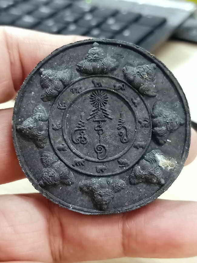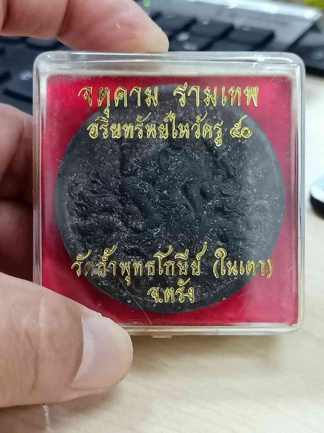 อายุกว่า 1,200 ปี ประทับไว้ด้านหลังทรงน้ำตาลแว่น ร่น " อริยทรัพย์ ไหว้ครู50