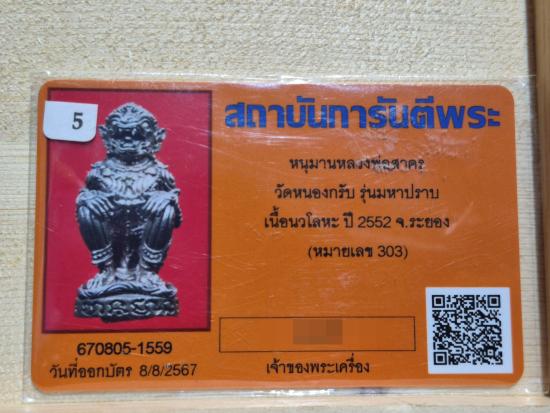 หนุมานหลวงพ่อสาคร วัดหนองกรับ รุ่นมหาปราบ **เนื้อนวโลหะ** อุดผงพรายกุมาร 2552 จ.ระยอง (หมายเลขสวย 303)