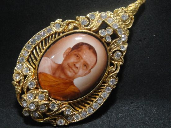 เข็มกลัดหลวงพ่อฤาษีลิงดำ วัดท่าซุง จ.อุทัยธานี ที่ระลึกงานครบรอบวันเกิด ปี2542 เนื้อกะไหล่ทองลงยาฝังพลอย สวยคากล่องเดิม