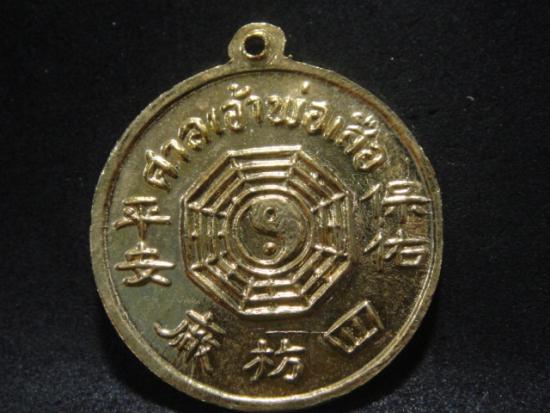 วัดใจเคาะเดียว.......100.......เหรียญกลม ศาลเจ้าพ่อเสือ เสาชิงช้า กทม กะไหล่ทอง
