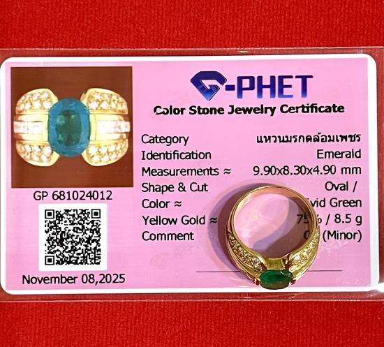 มรกตแท้ธรรมชาติ+เพชรแท้+ งานทองแท้ 18K+น้ำหนักตัวเรือนรวม 8.5g+size 53(17mm)