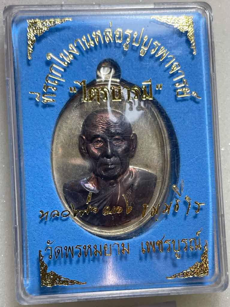 300.- ems เหรียญ ไตรบารมี ปี 53 หลวงพ่อผอง วัดพรหมยาม อ.เชียรบุรี จ.เพชรบูรณ์ เนื้ออัลปาก้าหน้ากากนวะโลหะ เลขสวย no.63(รวมผล9) สภาพสวยเดิมๆคากล่อง จมูกโด่งๆ ท่านเป็นศิษย์หลวงพ่อทบ