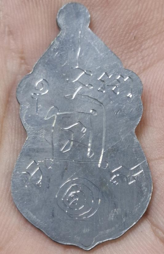 เหรียญน้ำเต้า พระอาจารย์สมพร ถาวโร วัดจันทาราม ปทุมธานี เนื้อตะกั่วหลังเรียบ จารมือ |