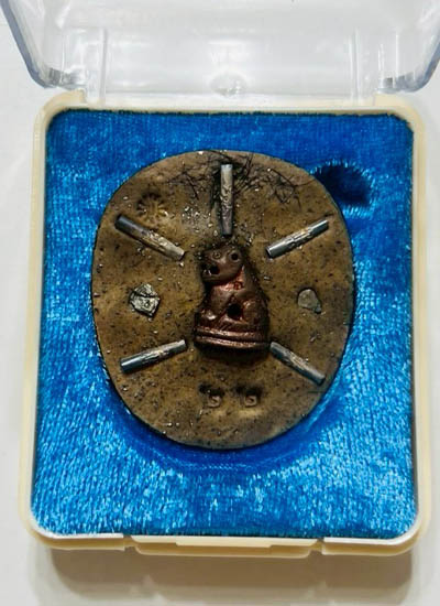 ความสูง 4.5 ซม. ฝังตะกรุดเงิน 5 ดอก มวลสารว่านมหามงคล108 เพชรหน้าทั่ง เหล็กน้ำพี้ เล็บและเกษา |