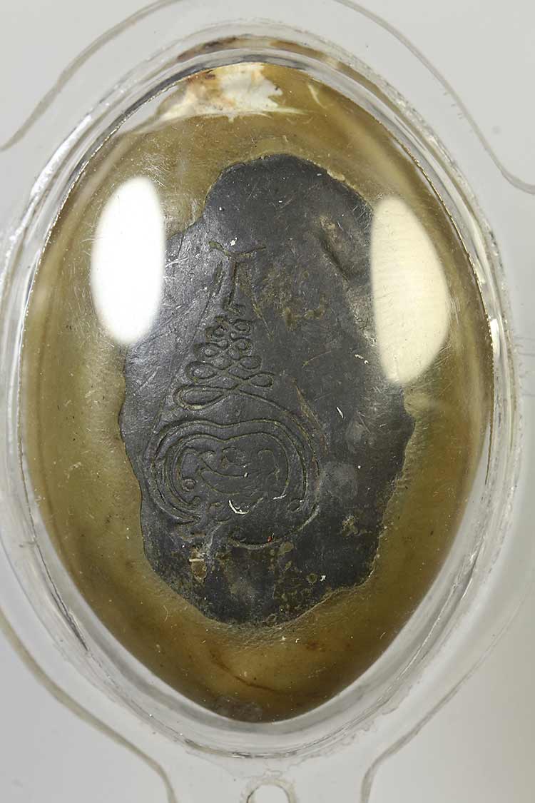 วัดใจ**เครื่องราง เบี้ยแก้หุ้มตะกั่ว*{ มีรอยจาร ปรอทวิ่งอยู่ }*ไม่ทราบที่....ตามสภาพครับ