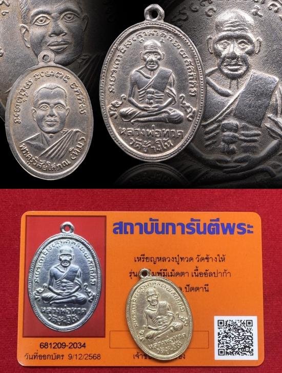 เหรียญหลวงปู่ทวด วัดช้างให้ รุ่น4 พิมพ์มีเม็ดตา เนื้ออัลปาก้า ปี2505 สภาพสวยเดิม รับประกันแท้และตามกฎครับ