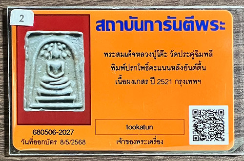 สมเด็จคะแนนหลังยันต์ตื้น ปี21 เนื้อเกสร สภาพสวย หน้ากลมโพธิ์เด้ง ยันต์หลังคมชัด พร้อมบัตรรับรองพระแท้