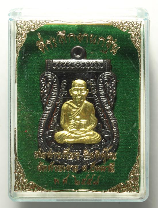 เหรียญเสมาหลวงพ่อทวดหน้าเลื่อนหลัง พ่อท่านเขียวไหว้ข้าง รุ่น กฐิน 57 พ่อท่านเขียว วัดห้วยเงาะ เนื้อ ทองแดงรมดำ หน้ากากทองทิพย์ ปี 2557 สวย กล่องเดิม
