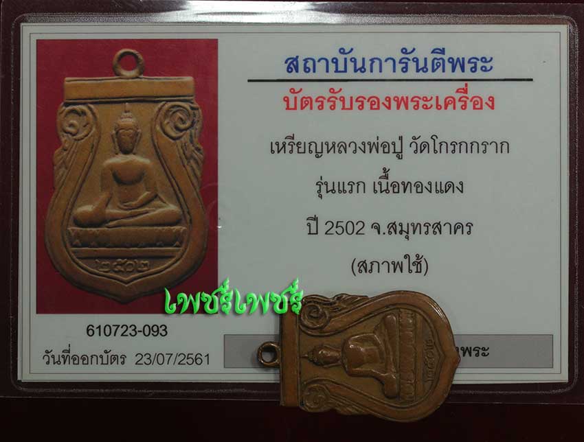 เหรียญ หลวงพ่อปู่ วัดโกรกกราก รุ่นแรก เนื้อทองแดง ปี2502 จ.สมุทรสาคร สภาพยังสวยคมชัด พร้อมบัตรรับรองพระแท้จากการันตีพระสบายใจได้พระแท้แน่นอน ค่ะ
