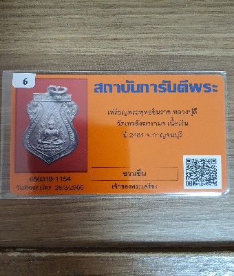 เหรียญชินราช หลวงปู่ดี วัดเหนือ ปี2481 เนื้อเงิน พร้อมบัตรรับรอง