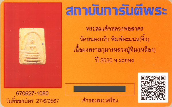 พระสมเด็จคะแนน(รุ่นแรก) หลวงพ่อสาคร วัดหนองกรับ เนื้อว่านดอกทองผสมผงพรายกุมาร(โซนนิยม) ปี2530 องค์นี้พระหนามาก สภาพสวยเดิมครับ