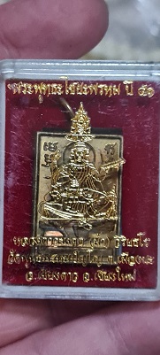 เหรียญพระพุทธไชยะพรหม หลวงตาม้า วัดพุทธพรหมปัญโญ (วัดถ้ำเมืองนะ) เชียงใหม่.เนื้อทองเหลือง มีจาร 2ตัว มีกล่องวัดสร้างเมื่อปี 2551