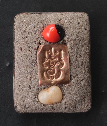 เเละนำฝามือใส่ศรีษะ เเละรวมกำลังแห่งภาวนา เข้าสู่องค์องค์ภาวนา เพ่งกระเเสจิต ไปที่วัตถุมงคล