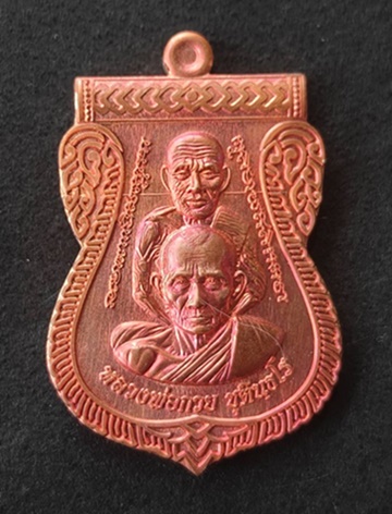 เหรียญพุทธซ้อนเหนือดวง เนื้อทองแดง ด้านหน้าหลวงปู่ทวดและหลวงพ่อกวย หลังท้าวเวสสุวรรณ โดยมีหลวงพ่อเล็ก วัดท่าขนุน ศิษย์หลวงพ่อฤาษีลิงดำ วัดท่าซุง อธิฐานจิต |