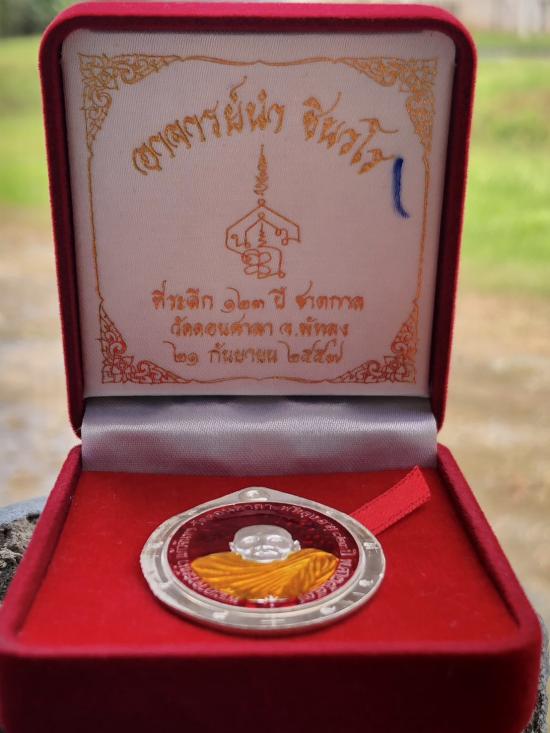 เหรียญพระอาจารย์นำ ชินวโร วัดดอนศาลา จ.พัทลุง รุ่น 123 ปี ชาตกาล เนื้อเงินลงยาแดง ไม่ตัดปีก โค๊ต 9 รอบ หมายเลข 78 (สร้าง 99 เหรียญ) พร้อมกล่องเดิมๆ |