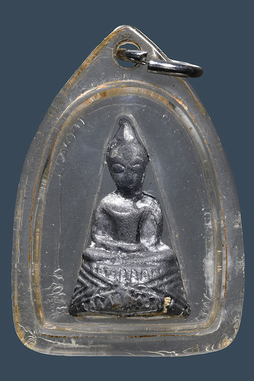 พระพุทธฝังเขี้ยวหมาป่า เนื้อชินตะกั่ว หลวงพ่อดำ วัดบางกุฎีทอง เลี่ยมพลาสติกพร้อมใช้ |