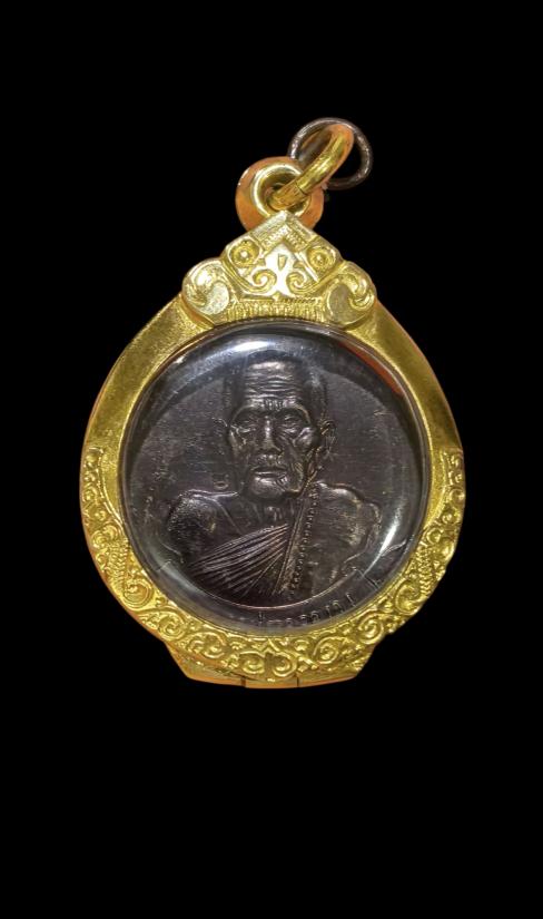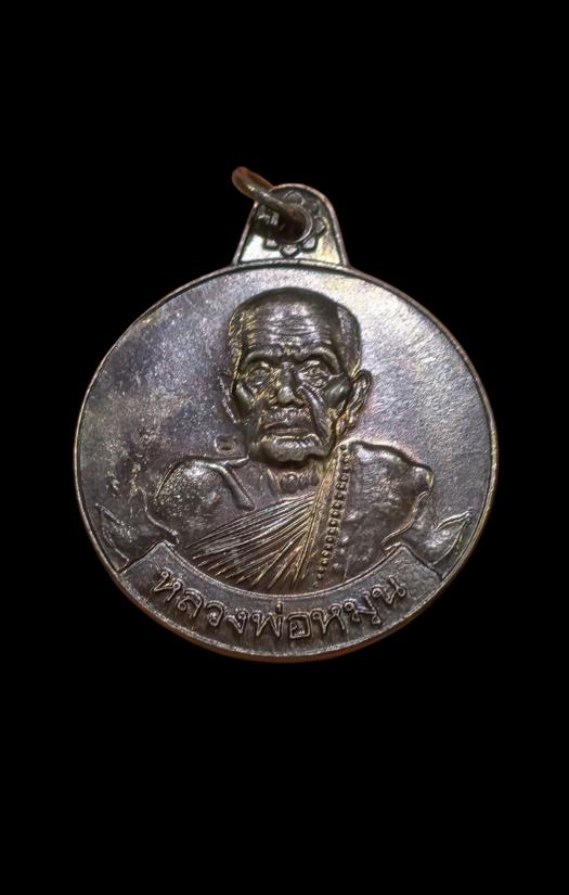 เหรียญหลวงปู่หมุน วัดบ้านจาน รุ่นหมุนเงินหมุนทอง พิมพ์ประคำ 18 เม็ดบางไหล่ผด เนื้อทองแดงรมดำ ปี 2542