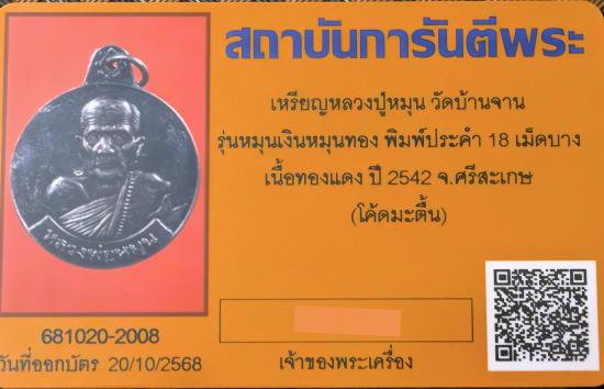 เหรียญหลวงปู่หมุน วัดบ้านจาน รุ่นหมุนเงินหมุนทอง พิมพ์ประคำ 18 เม็ดบางไหล่ผด เนื้อทองแดงรมดำ ปี 2542 จ.ศรีสะเกษ (โค้ดมะตื้น) สภาพสวยสมบูรณ์มากคมชัด ผิวเดิมๆ มาพร้อมบัตรรับรองพระแท้ แถมตลับทองไมครอน 1 ใบพร้อมขึ้นคอครับ