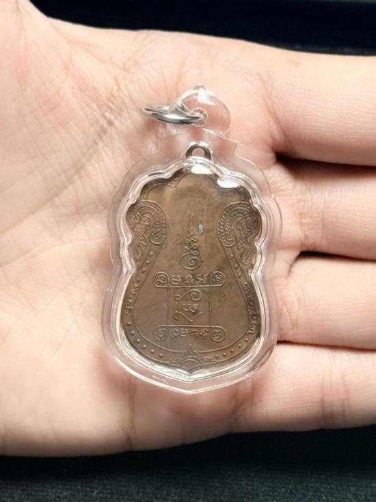 เคาะเดียวแดง เหรียญ เจ้าคุณผล วัดหนัง ปี 2512 มีรอยจาร ด้านหลัง เนื้อทองแดง สวย เลี่ยมพร้อมใช้