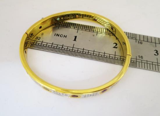 กำไลทองเค 18K750 ประดับเพชรแท้รอบวงประมาณ 210 เม็ด น้ำหนักเพชรรวม 2 กะรัต ขนาดวงกว้าง 56.5 x 50.5 มม. หน้ากว้าง 6.5 มม. น้ำหนัก 22.0 กรัม. ข้อมือไม่เกิน 6.6-7.0 นิ้วใส่ได้ วงนี้สวยครับเป็นมือสองสภาพสวยๆใหม่ๆครับ งานฝังสวยงามครับ