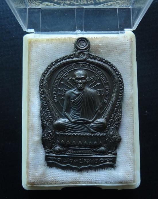 เหรียญนั่งพาน 3 ม.ต. เนื้อนวะ หลวงพ่อเกษม เขมโก ปี2537 เลขโค้ด 2405 สวยๆ พร้อมกล่องเดิมหายาก