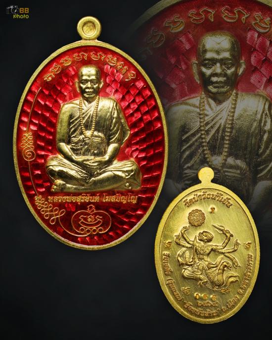เหรียญมนต์พระกาฬ เนื้อทองคำลงยาแดง พระอาจารย์สุริยันต์ โฆสปัญโญ วัดป่าวังน้ำเย็น จ.มหาสารคาม 1 ใน 9 เหรียญ