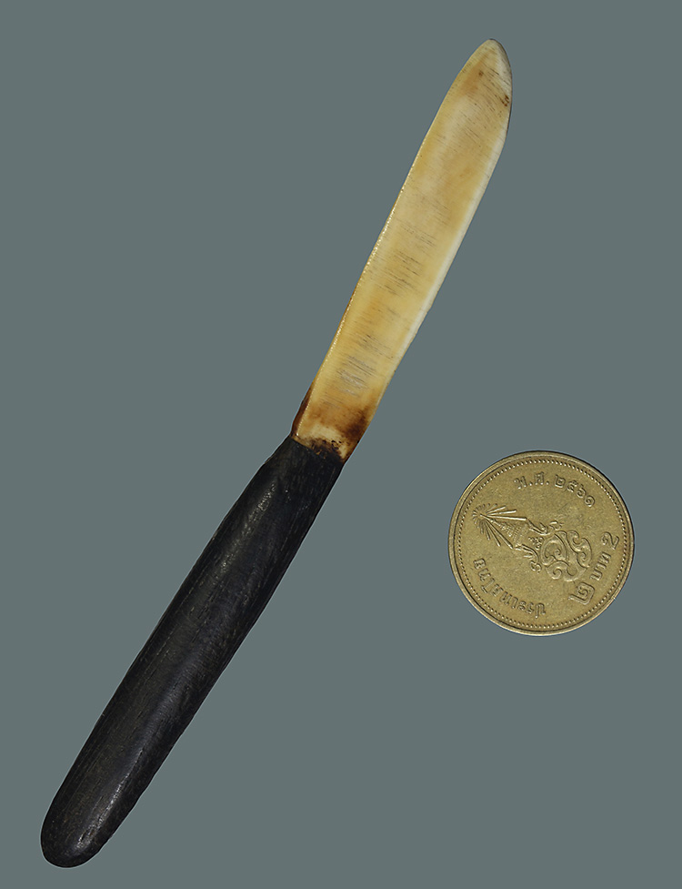 วัดใจ**เครื่องราง มีดแหก เนื้องาแกะล้านนาโบราณ ยาว 4.นิ้ว หายาก....ตามสภาพครับ