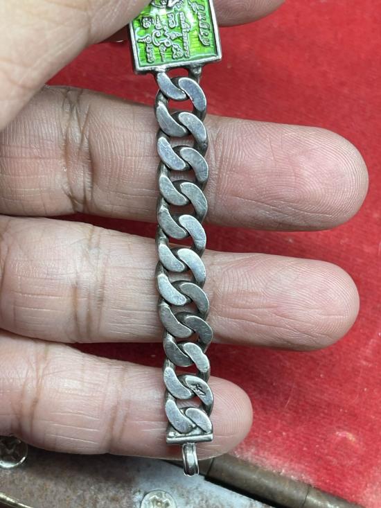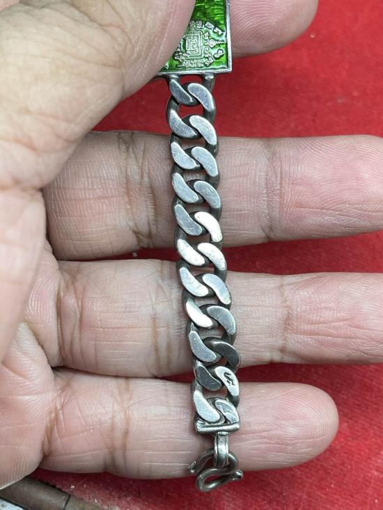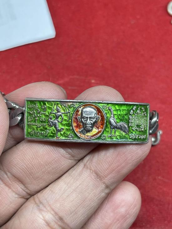 หลวงพ่อรวย วัดตะโก จ.อยุธยา เลสข้อมือ รุ่น รวยศรฤทธิ์ ปี57 เนื้อเงินลงยา ขนาด2บาท