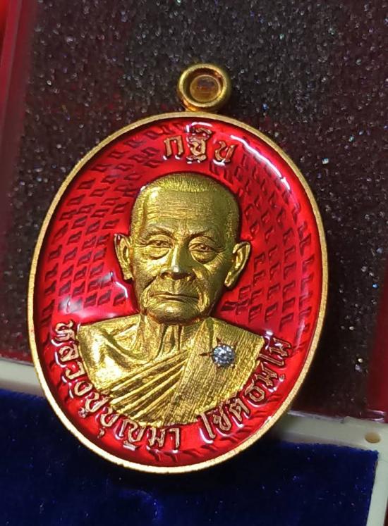 เหรียญกฐินปี67 เนื้อชุบทองลงยาแดง ฝังเพชร No.77 |