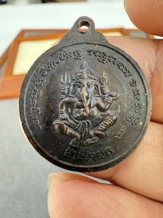 วัดใจ เหรียญครบ 7รอบ หลวงพ่อเกษม เขมโก หลังพระพิฆเนศ ปี 2538 มีโค้ด