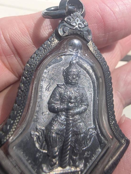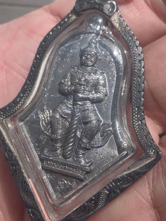 เหรียญท้าวเวสสุวรรณ จำปี 45 เนื้อตะกั่ว พร้อมจารหน้า จารหลัง เลี่ยมกรอบพลาสติกเก็บผิวอย่างดี และกรอบเงินแบบถอดได้ครับ
