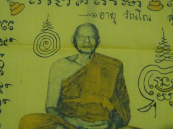 ผ้ายันต์รุ่นนี้หลวงพ่อแช่มท่านเมตตาอธิฐานจิตปลุกเสกให้ในกุฏิของท่าน มีปั้มโค๊ตตรายางข้างองค์หลวงพ่อแช่มด้วย |