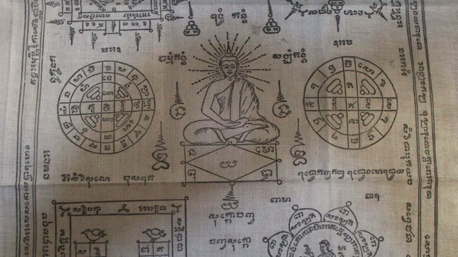 ผ้ายันต์ ไม่ทราบที่ เนื้อผ้าดูเก่า ครับ (พระบ้าน ครับ) |