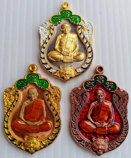 3. เนื้อทองแดงซาติน ลงยาแดง ซุ้มเขียว ขอบน้ำเงิน ลงยาจีวร ตอกนัมเบอร์ 16 |