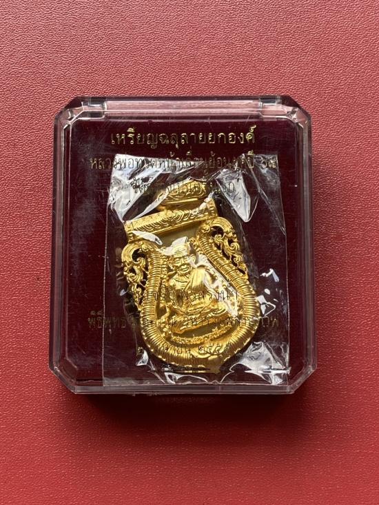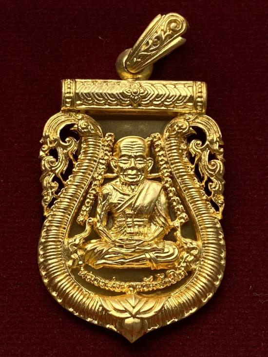 เคาะเดียวแดง หลวงปู่ทวด พิมพ์หน้าเลื่อน รุ่น เจริญพรสรงน้ำ เลข55 เนื้อ บรอนชุบทอง |