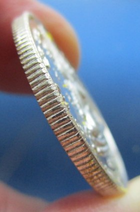 ที่ขอบมีรอยฝนนิดนึงนะครับ เทสโลหะเงิน นน.ประมาณ 11.64 กรัม |