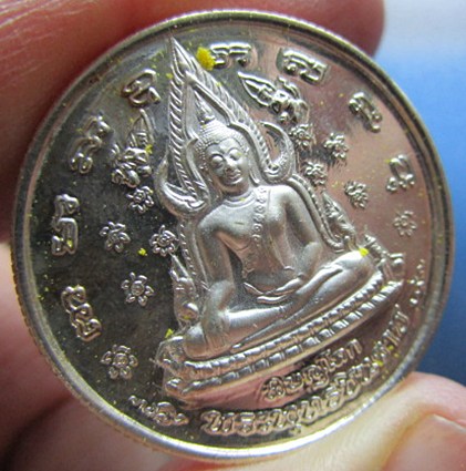 เหรียญพระพุทธชินราช เนื้อเงิน ชอบสตางค์ หลังสมเด็จพระนเรศวรมหาราช กู้เอกราช รุ่นวังจันทร์ พิธีมหาจักรพรรดิ์ ปี2548 จ.พิษณุโลก ที่ขอบมีรอยฝนนิดนึงนะครับ เทสโลหะเงิน |