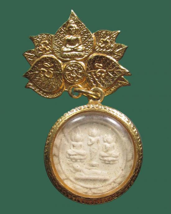 พระ สมเด็จพุทธคุณ สังเวชนีย์ ๔ (สมเด็จพุทธคุณ) วัดราชนัดดารามวรวิหาร ปี 2520 เนื้อผงอิทธิเจของอาจารย์ไสว สุมโน มีห่วงเป็นเข็มกลัดเหน็บ อกเสื้อ กะไหล่ทอง