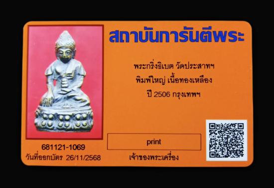 พระกริ่งธิเบต วัดประสาทฯ เนื้อทองเหลือง พ.ศ.2506 พร้อมบัตรรับรอง ครับ