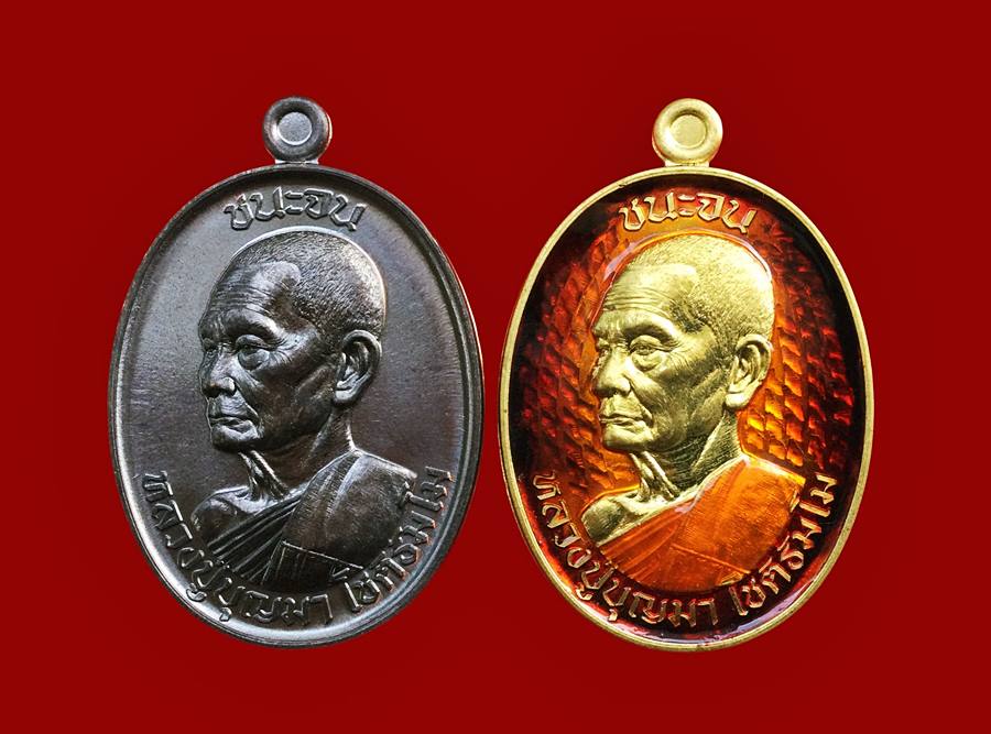 +!!เคาะเดียวllดง ตลอดสาย!!+ (รับ 2 เหรียญ) เหรียญ ชนะจนหลวงปู่บุญมา สำนักสงฆ์เขาแก้วทอง เนื้อฝาบาตรลงยา+ทองแดงรมดำ มีกล่องให้ 1 ใบนะครับ