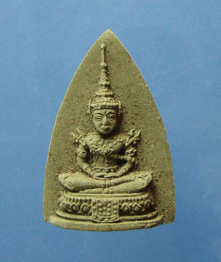 พระแก้วพิมพ์เล็กเนื้อใบตอง หลังโรยเกษาและผงตะไบทองครับ |
